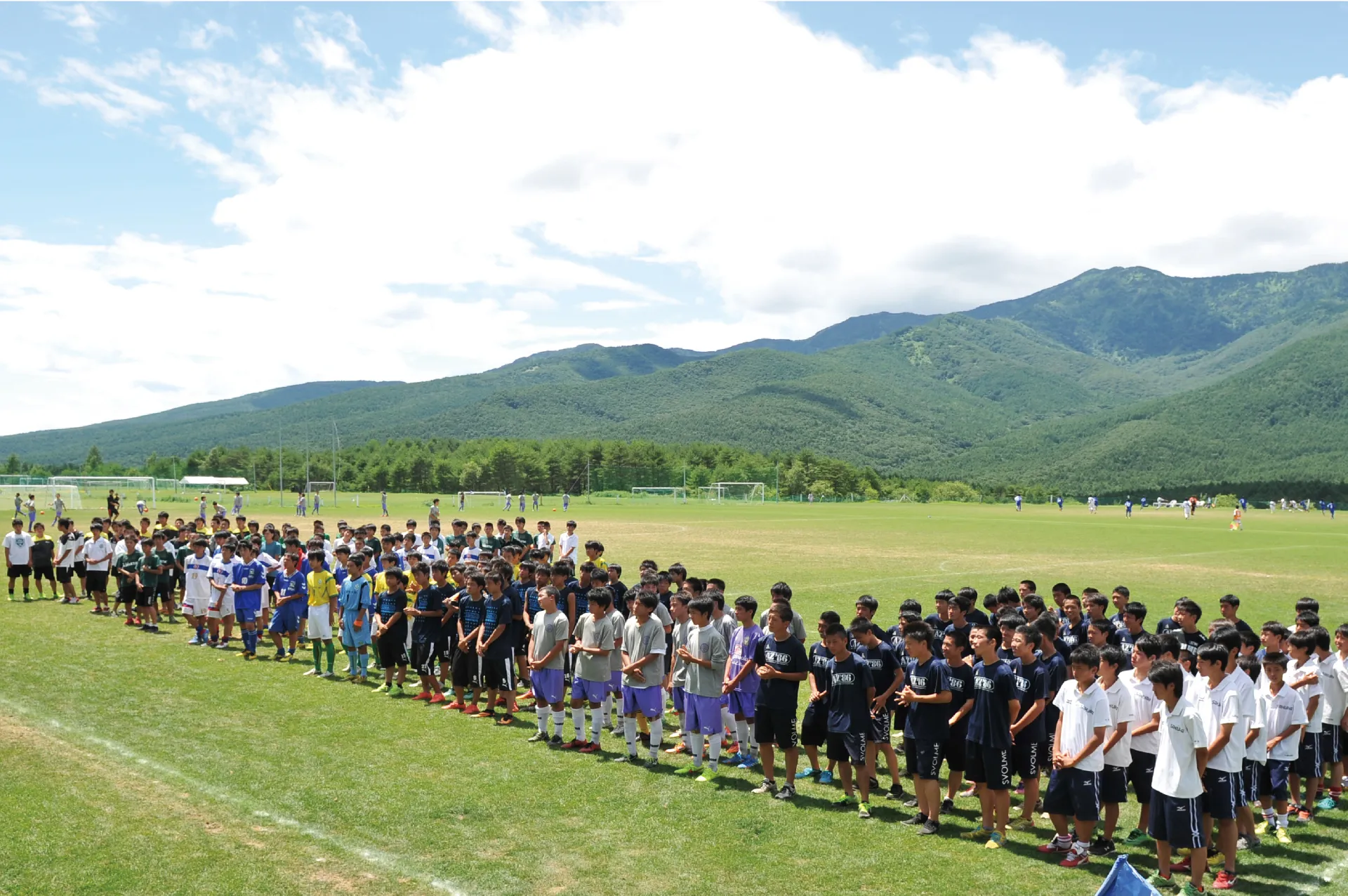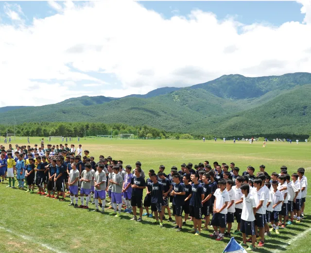 山々に囲まれ自然と元気になってくるのがわかります。天然芝のグランドで普段できない他県のチームとサッカーをしませんか。